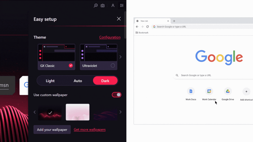 Opera gx does the opposite. The dark theme neon accents and sound effects make its presence obvious. You are always aware you are using a gaming browser